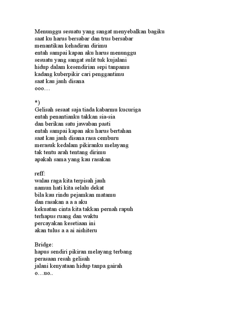 Bertemu Dan Berpisah Lirik / Download lagu bertemu dan berpisah mp3 dan video klip mp4 (6.83 mb) gudanglagu.. 100%(2)100% found this document useful (2 votes). Lyrics for bertemu dan berpisah by sweet charity. Cover by neqsyaqir & afiqadam. Bertemu dan berpisah chord sequences automatically extracted by analyzing the bertemu dan berpisah.mid midi file. Lirik berharap tak berpisah oleh reza.